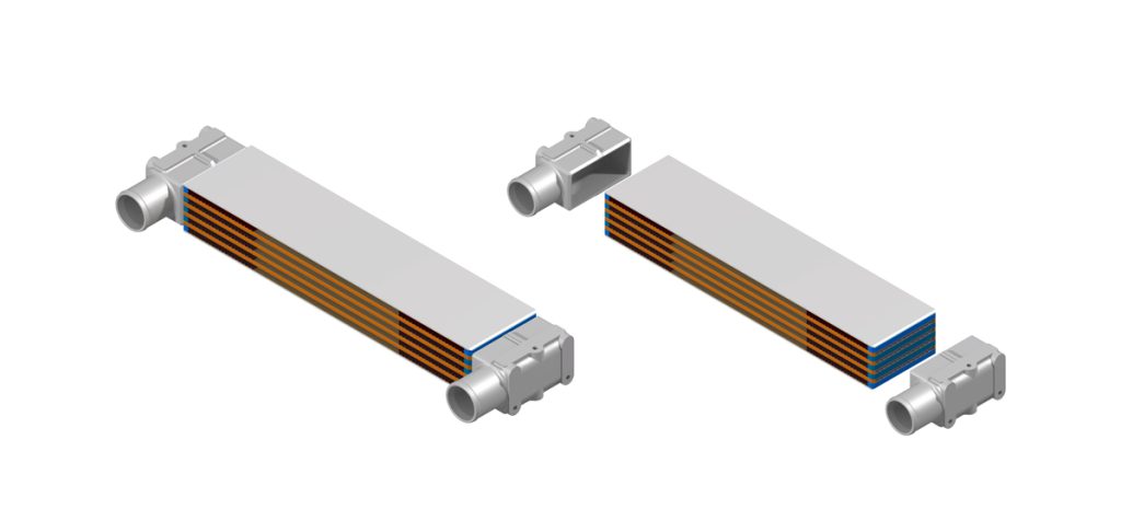 이와 같은 Cooling Module은 다양한 종류의 건설기계 엔진룸 (Engine Room) 에 장착되며, 건설장비의 정상작동 및 원활한 성능 구현을 위해 각각의 열교환기들의 냉각 기능을 수행합니다.Radiator